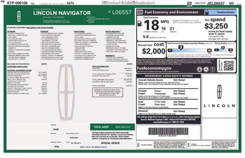 2018 Lincoln Navigator L Reserve 4WD 10-Speed Automatic V6